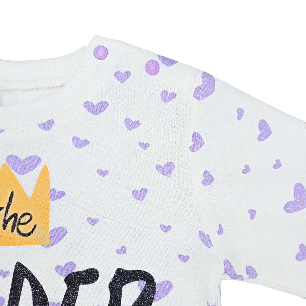 Σετ φόρμας για μωρό κορίτσι σε λευκό - λιλά με γράμματα από glitter, καρδούλες και στέμμα πάνω από η φράση “the WONDER girl”