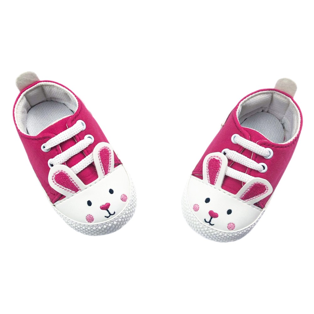 Παπούτσια αγκαλιάς με κορδόνια, λευκή σόλα και κεντημένο κουνελάκι με 3d αυτάκια στο μπροστινό μέρος