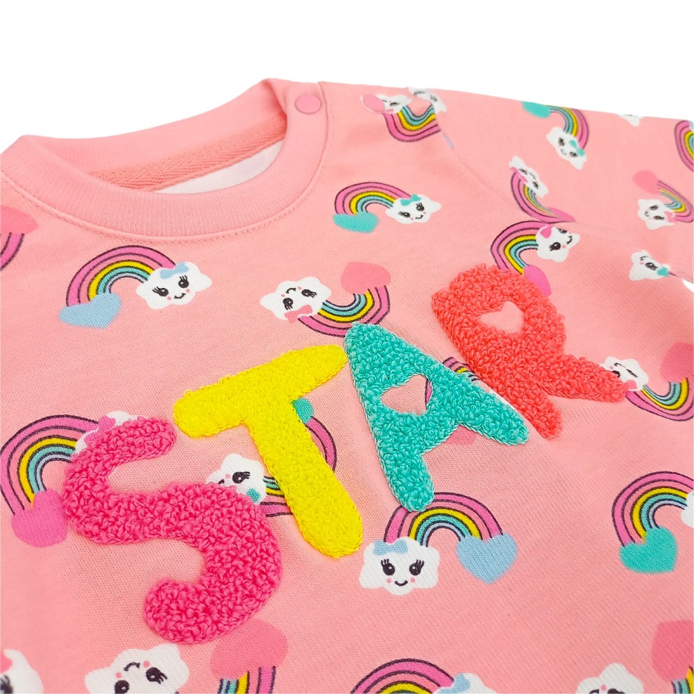 Σετ φόρμας για μωρό κορίτσι, με ουράνια τόξα και 3d χρωματιστά γράμματα που σχηματίζουν τη λέξη “STAR” με ανάγλυφη κλωστή.